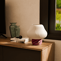 Lilo lamp with warm white light lamp for your bed room or living room, can be used as table lamp, bed side lamp or for decoration. Designed and manufactured in India with 100% biodegradable and durable material for long lasting life.